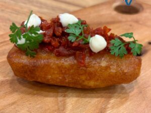 El bar restaurante Baserriberri, vencedor en 2017, 2019 y 2025, se inspiró en los navarros que emigraron a Argentina durante la Guerra Civil, para crear ‘El pintxo de los que no ganaron’, una empanada argentina de costilla de vaca del Pirineo navarro, que une la pasión por la parrilla de ambos territorios. Un pincho que mereció la Plata del certamen.